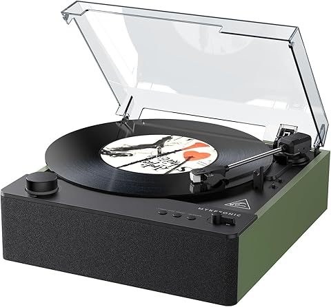 Full Size Vinyl Record Player, 3-Speed Bluetooth Turntable with Ruby Stylus, Adjustable Counterweight, Built-in 4 Stereo Speakers, Hi-Fi Belt-Drive with Auto Stop, White