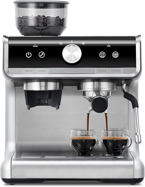 Gevi Espresso Machine with OPV, 20Bar Espresso Maker with Milk Frother Steam Wand, Dual Display, 58mm Portafilter, Stainless Steel Espresso Machines for Espresso/Latte/Cappuccino, White