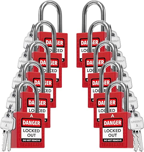 TRADESAFE Lockout Tagout Locks Set, 10 Red Keyed Alike Unlimited Grouping Safety Padlocks, 2 Keys Per Lock, OSHA Compliant Loto Locks for Lock Out Tag Out Kits