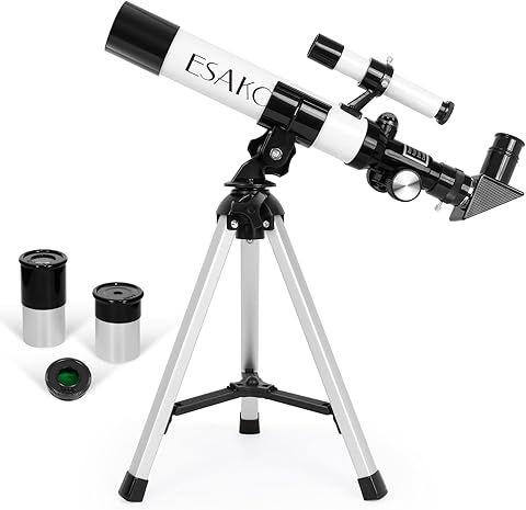 ESAKO Telescope for Kids, 100x Magnification, Kids Telescope with Two Eyepieces, Finder Scope, Tabletop Tripod Educational Gift